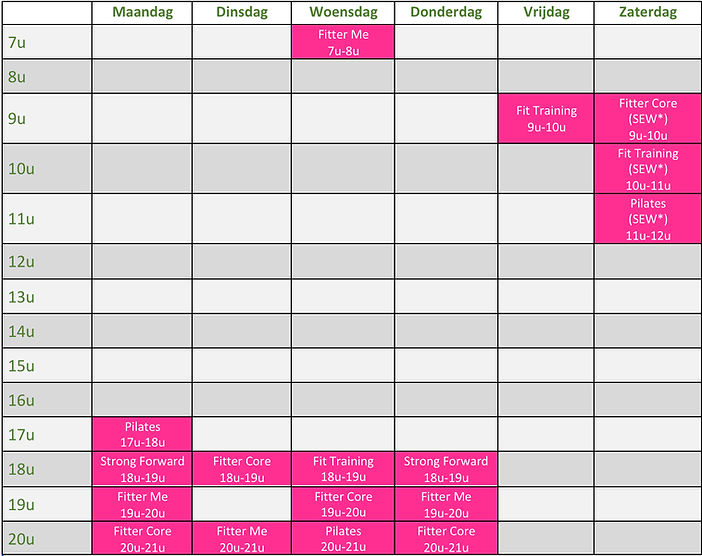 Ons aanbod bestaat uit 3 verschillende lessen. Door het trainen met kleine groepen tot max 10 personen focussen we nog steeds op goede begeleiding.